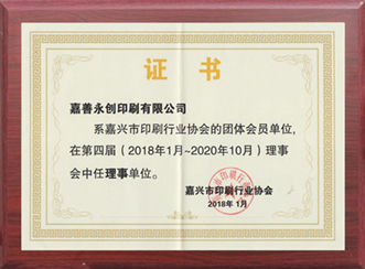 嘉善永创印刷有限公司成立于2002年,是嘉兴印刷行业协会的理事单位,是嘉善印刷行业协会的副会长单位。