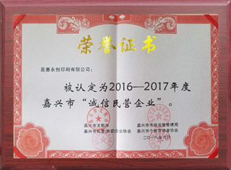 2011至2020年度嘉善县行政事业单位定点印刷企业。