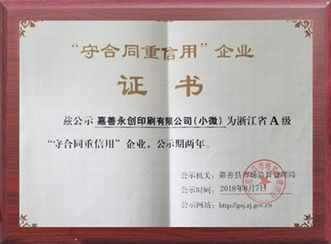 2018年至2020年度嘉兴市(含五县四区)政府事业单位定点印刷单位。